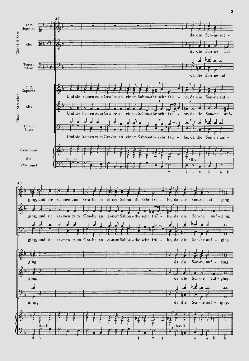 - Besetzung Gesang, 2 gemischte Chöre (SSATB), Posaune, Streicher und Basso Continuo