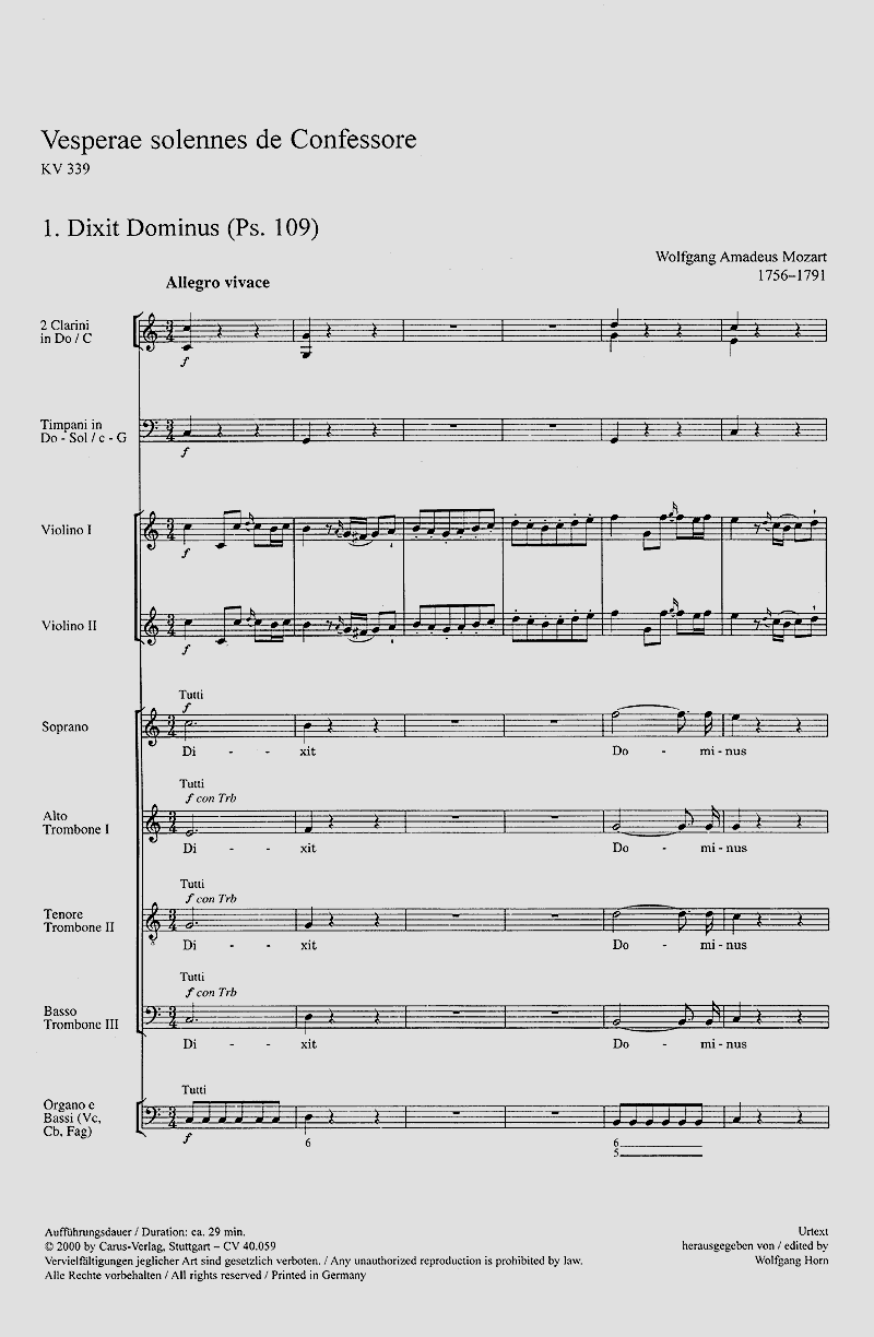 Soli SATB, Coro SATB, 2 Ctr, Timp, 2 Vl, Bc, [3 Trb]