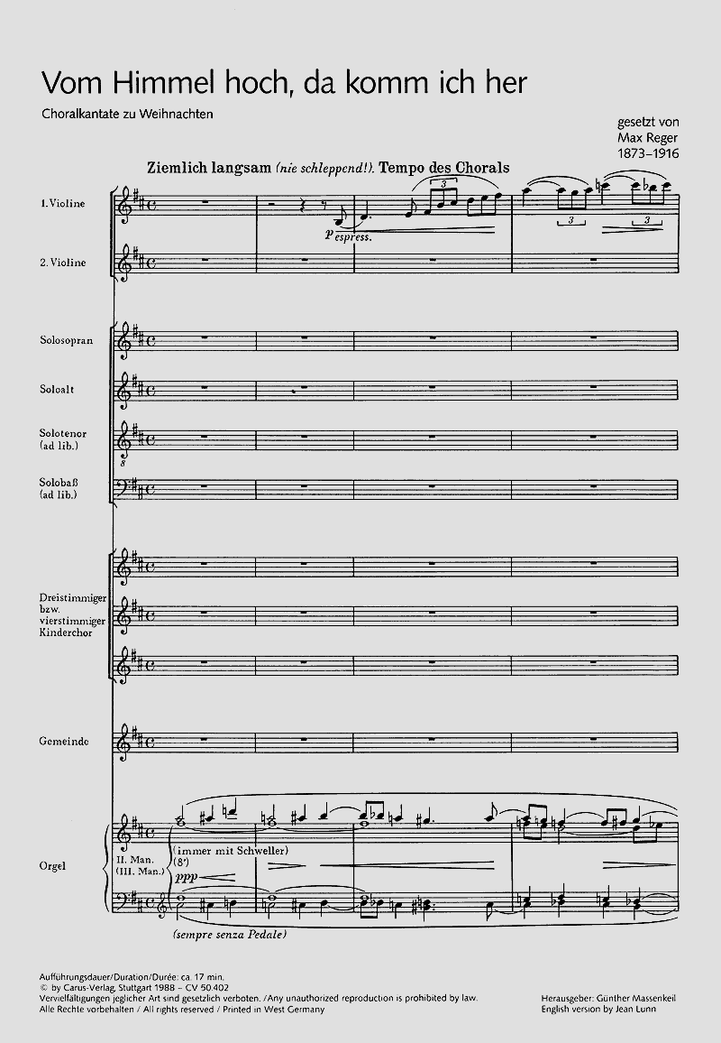 - Besetzung Soli, Frauenchor (SSAA), Gemeinde, 2 Violinen und Orgel