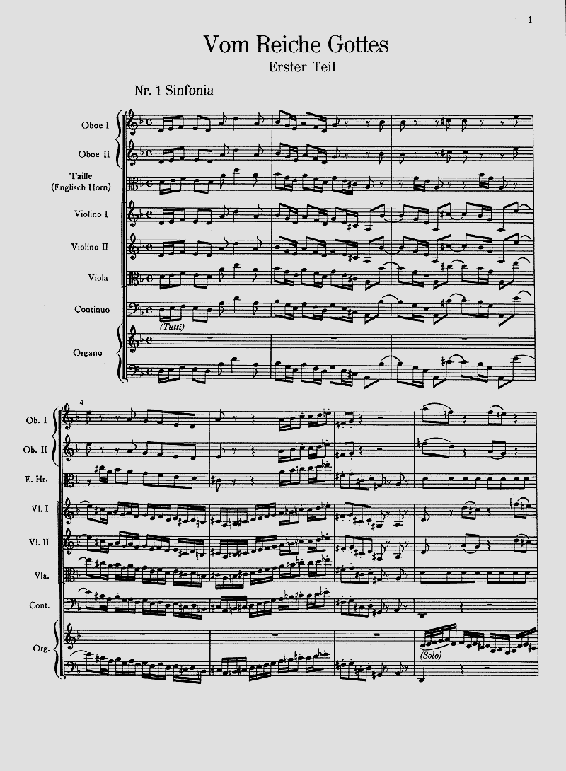 Zusammenstellung aus Sätzen Bachscher Kantaten - Abendfüllendes Oratorium, zum Bachfest 1950 zusammengestellt von Hans Grischkat unter Verwendung besonders wertvoller Sätze aus wenig bekannten Kantaten Bachs. Soli SAB, Coro SATB, 3 Blfl f1, 2 Fl, 2 Ob, Eh, Fg, 3 Tr, 3 Trb, Timp, Str, Org