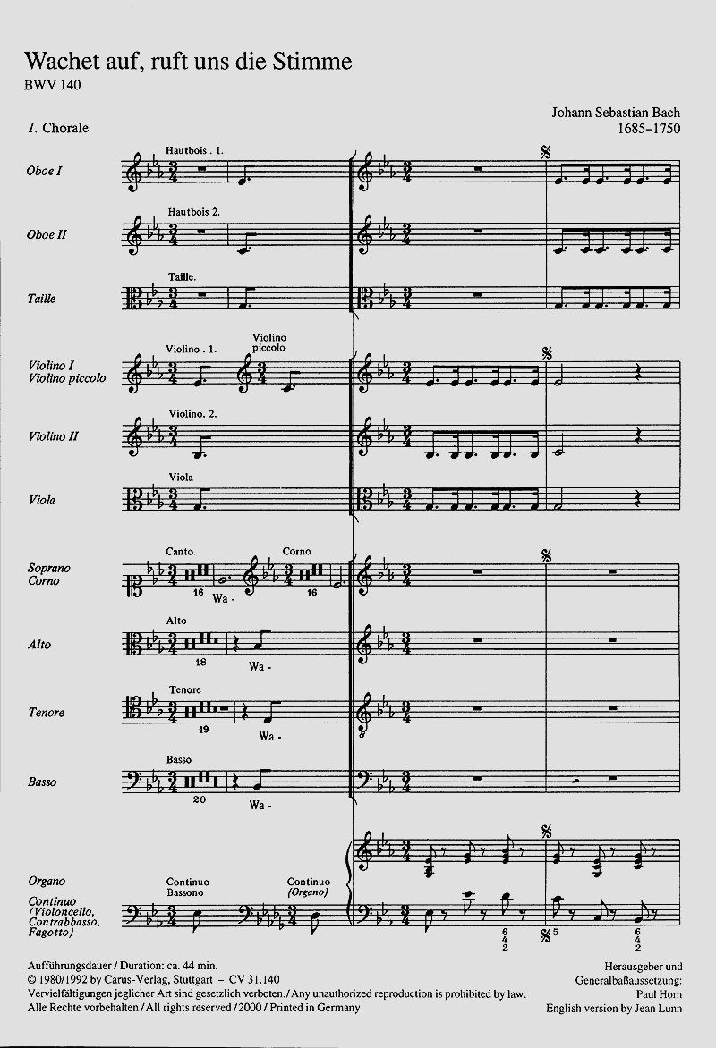 - Besetzung Soli, Gemischter Chor (SATB), 2 Oboen, Englischhorn, Violine, Streicher, Fagott und Orgel