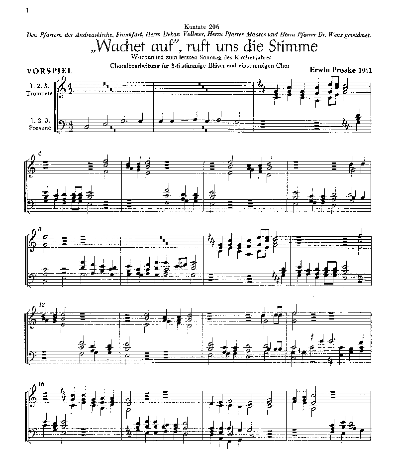 - Besetzung Chor (1-stimmig), 5 Trompeten und 3 Posaunen