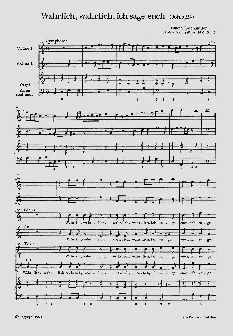 - Besetzung Gemischter Chor (SATB), 2 Violinen und Basso Continuo