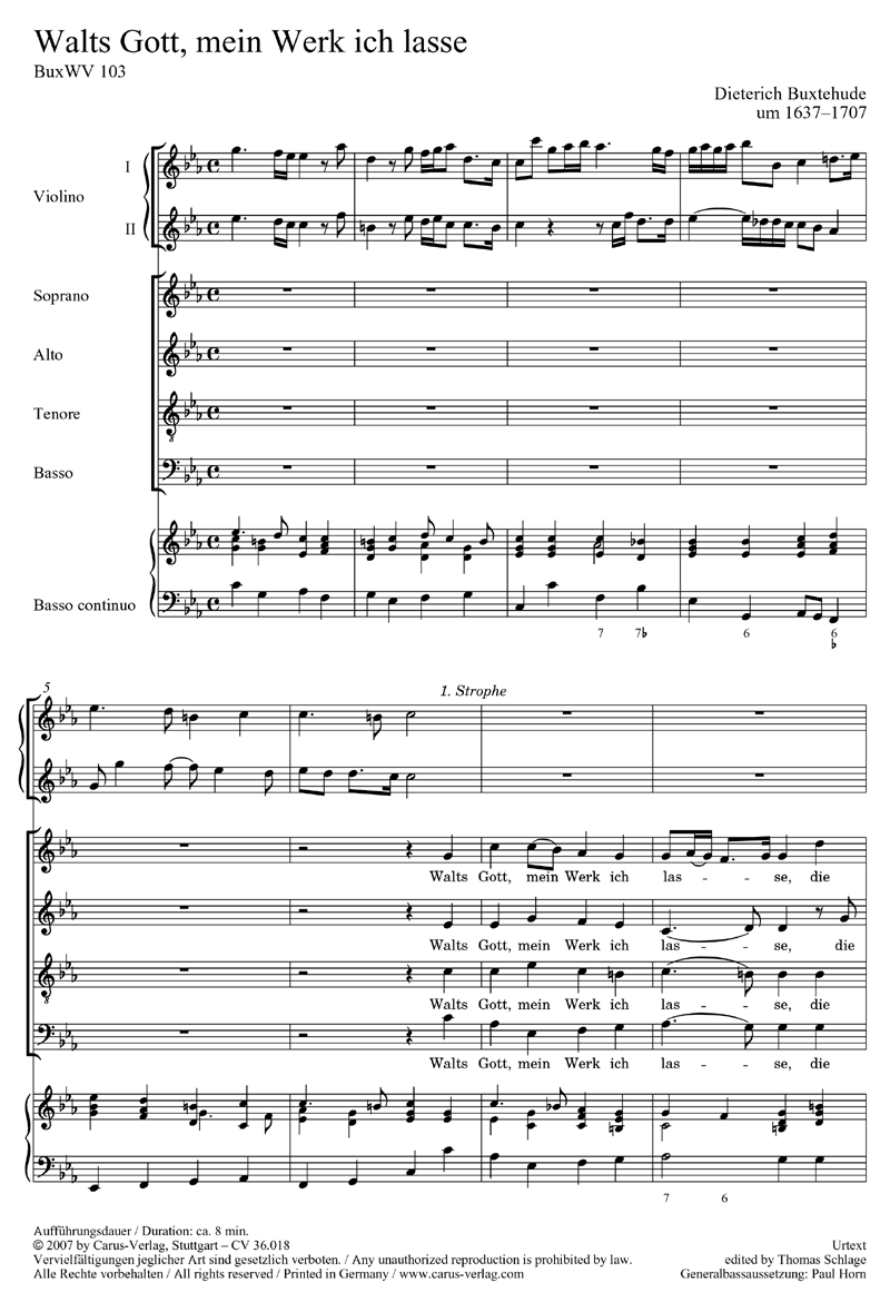- Besetzung Gemischter Chor (SATB), 2 Violinen und Basso Continuo
