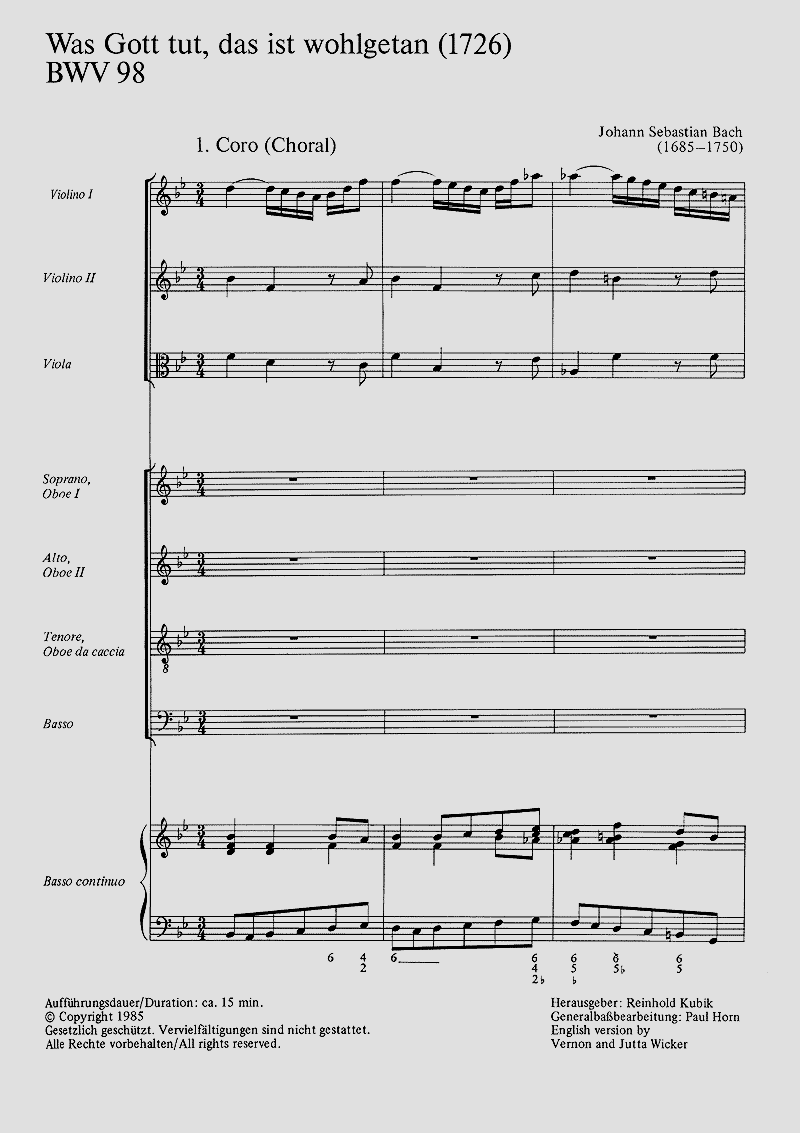 - Besetzung Soli, Gemischter Chor (SATB), 2 Oboen, Englischhorn, Streicher und Orgel