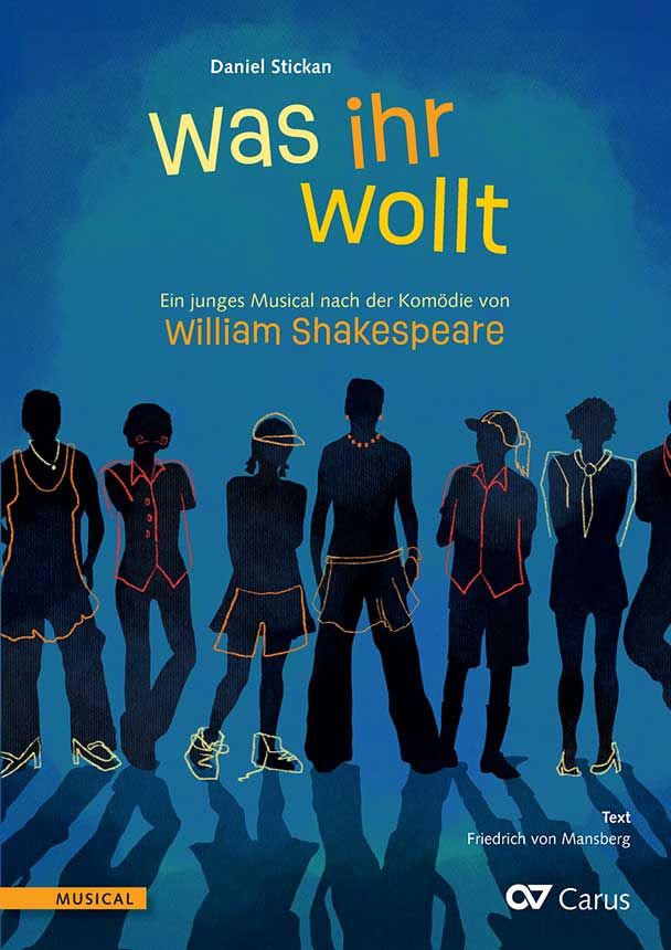 Inhalt und Botschaft: Shakespeares "Was ihr wollt" ist ein zeitloser und altersunabhängiger Klassiker des Theaterrepertoires. Nun hat der Komponist und Jazzpianist Daniel Stickan aus dem Stoff ein Musical komponiert. Die erste Inszenierung am Theater Lüneburg war ausschließlich mit jugendlichen Darsteller*innen besetzt und ein absoluter Publikumsrenner! Die Handlung bleibt ganz nah am Shakespeare’schen Original: In Illyrien, da dreht sich alles um die Liebe, so scheint es. Ganz schön verwirrend, nicht nur, weil sich hier mitunter Frauen, die von Männern gespielt werden, als Männer verkleiden, die Frauen spielen. Oder so ähnlich. Shakespeare stellt heute höchst aktuelle Fragen nach Identität und Begehren, nach Lust und Sehnsucht und nach der Auflösung allzu eindeutiger Geschlechterrollen. Er lässt Grenzen verschwimmen und öffnet (Spiel-)Räume. Wenn wir von Liebe sprechen, meinen wir dann in erster Linie uns selbst oder unser Gegenüber? Die Protagonist*innen begeben sich auf eine Entdeckungsreise. Das Ergebnis ist ein höchst unterhaltsames junges Musical mit Tiefgang: Schließlich ist wahrer Humor nie ohne eine gewisse Portion Ernsthaftigkeit zu haben. Musik und Text: Daniel Stickans Musik ist gekennzeichnet von einer fantasievollen, sehr persönlichen Klangfarbe, die anspruchsvolle Popmusik mit Jazzeinflüssen und Ohrwürmern bietet. Die Stimmumfänge sind einem jugendlichen Ensemble (ab 14 Jahren) auf den Leib geschrieben. Gesangs- und Schauspielerfahrung sind von Vorteil. Das Musical erscheint in zwei Fassungen: Original mit großem Instrumentalensemble und in einer reduzierten Fassung ohne Bläser (i.V.).