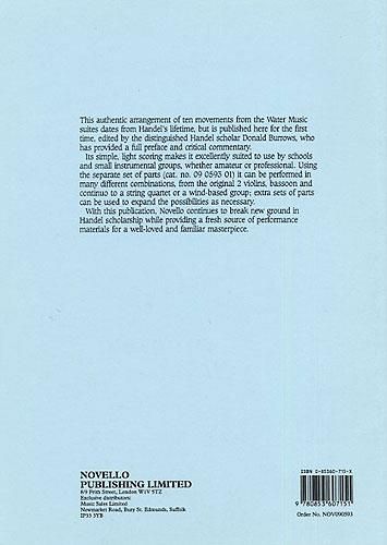 This authentic arrangement of ten movements from the Water Music suites dates from Handel's lifetime, but is published here for the first time, edited by the distinguished Handel scholar Donald Burrows. Its simple, light scoring makes it excellently suited to use by schools and small instrumental groups. It can be performed in many different combinations from the original two violins, bassoon and continuo to string quartet or wind-based group.