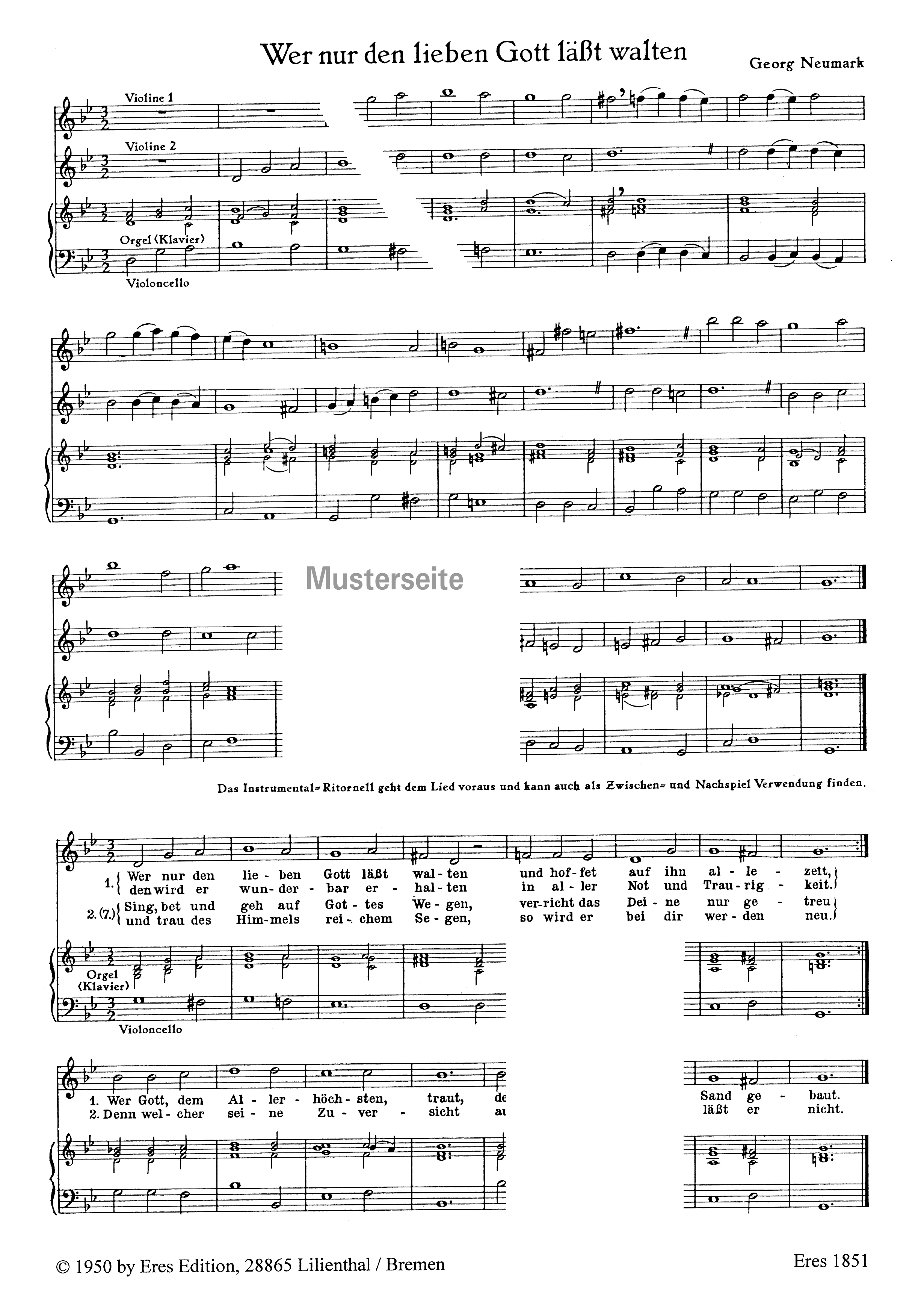 Eingerichtet für Gesang, 2 Violinen und Basso continuo von Walter Rein.
