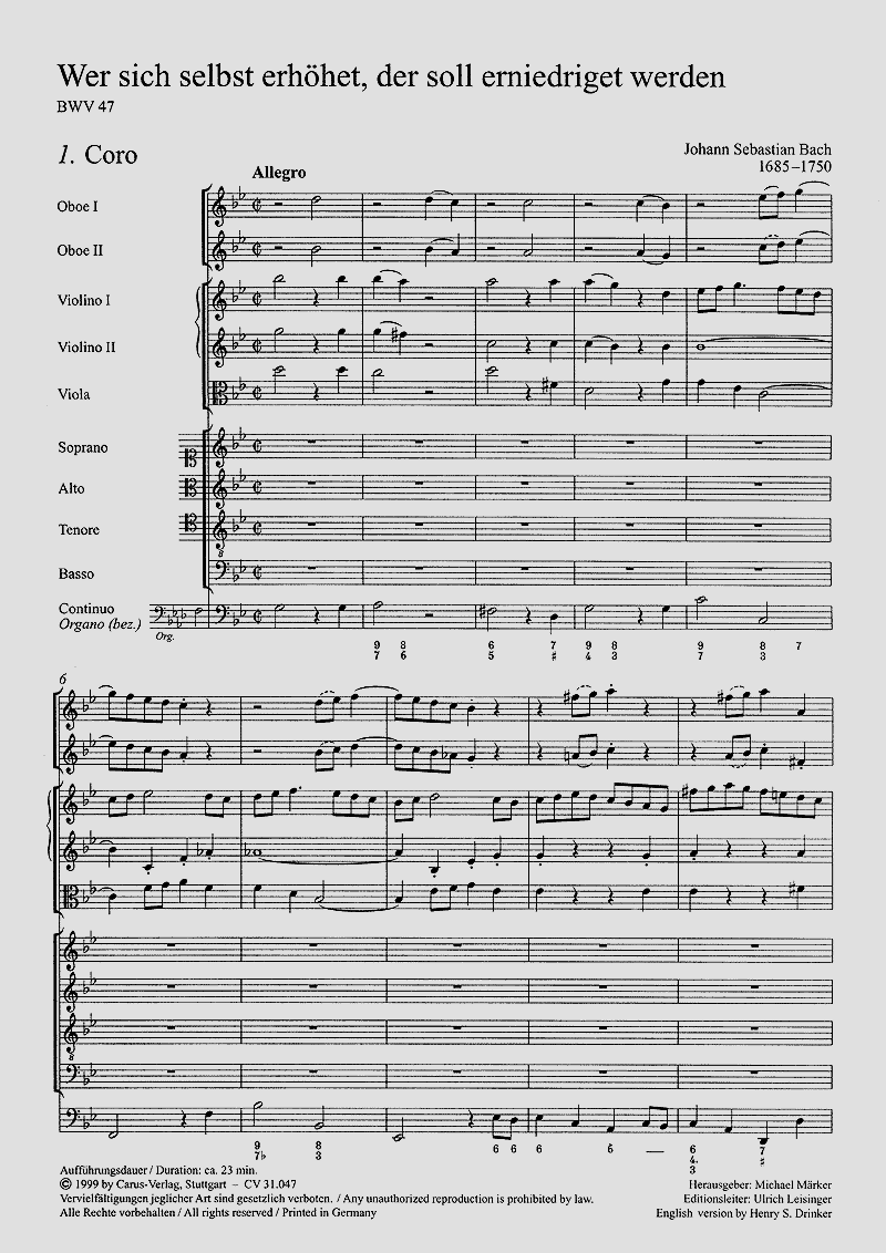 - Besetzung Soli, Gemischter Chor (SATB), 2 Oboen, Streicher und Orgel