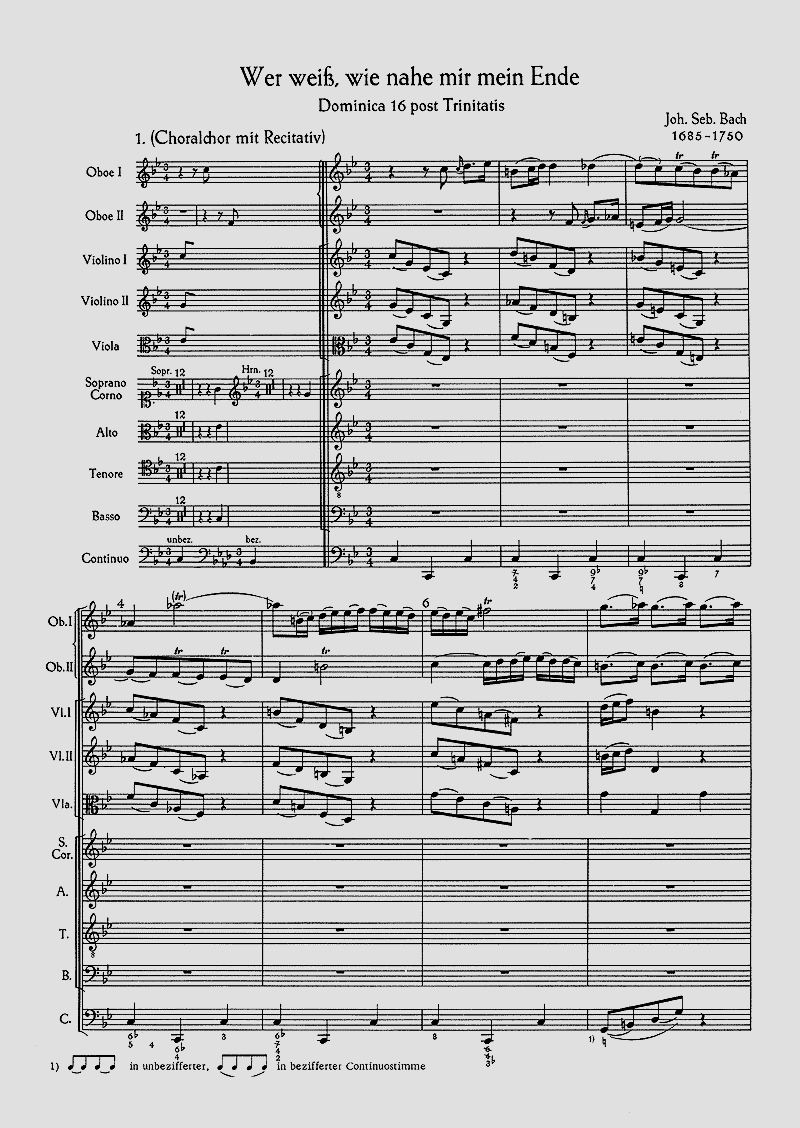 Kantate zum 16. Sonntag nach Trinitatis. Soli SATB, Coro SATB, [Cto], 2 Ob/1 Obca, Str, Org obl. - Tonart c-dorisch