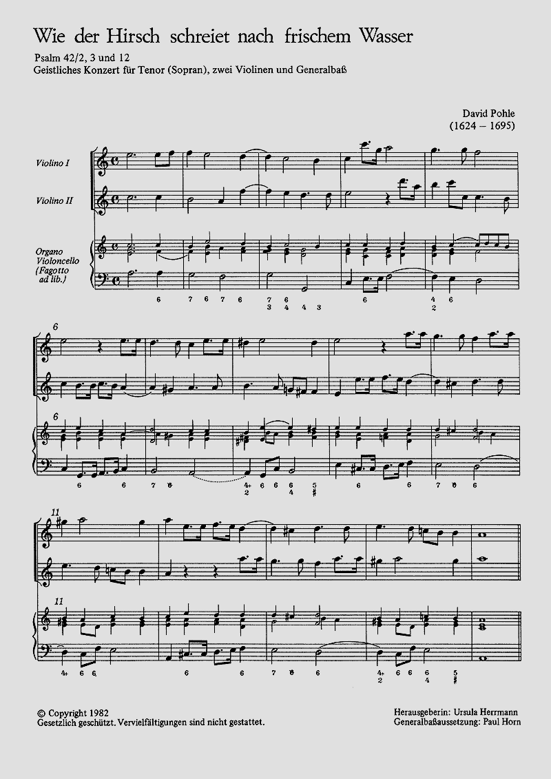 - Besetzung Gesang (hoch), 2 Violinen und Basso Continuo