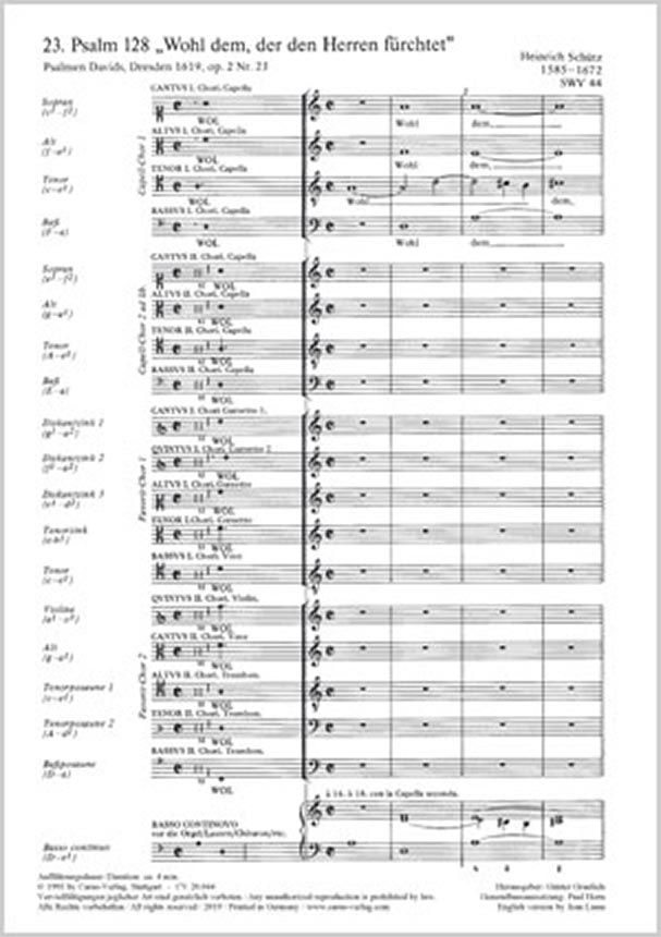 - Besetzung 2 Chöre, 4 Instrumente, Violine, 3 Posaunen, Kontrabass und Orgel