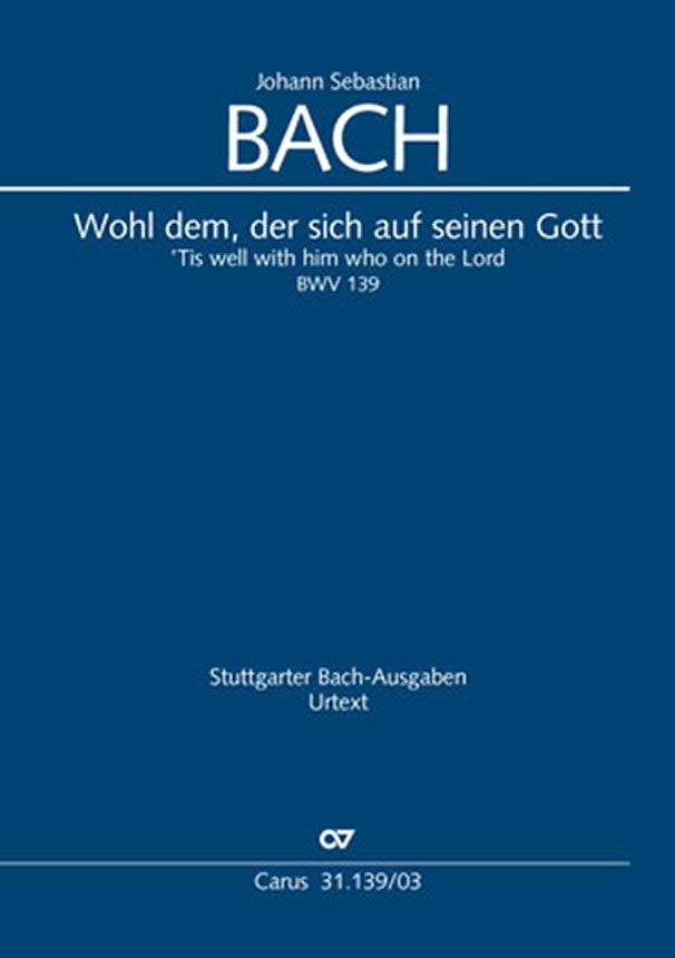 Bachs Choralkantate mit dem Textbeginn 'Wohl dem, der sich auf seinen Gott recht kindlich kann verlassen' BWV 139 erklang zum ersten Mal am 12. November 1724 im Leipziger Hauptgottesdienst. Der Kantatentext nach dem gleichnamigen Kirchenlied von Johann Christoph Rube (1665-1746) ist ein Lob des Gottvertrauens. Dem von Innigkeit erfüllten Eingangschor, in dem überall die Liedmelodie anklingt, folgt in der lebhaften Tenor-Arie 'Gott ist mein Freund' eine musikalische Schilderung der vergeblich tobenden Widersacher, und in der Bass-Arie 'Das Unglück schlägt auf allen Seiten' entfaltet Bach Dramatik und barocke Bildlichkeit. - Bei der Tenor-Arie ist eine der beiden Soloviolinstimmen verloren gegangen; die Ausgabe bietet hier eine Rekonstruktion. Der virtuose Violinpart der Bass-Arie geht offenbar auf eine verloren gegangene Stimme für Violoncello piccolo zurück. Die Ausgabe ermöglicht sowohl die Ausführung mit Violine als auch mit Violoncello.