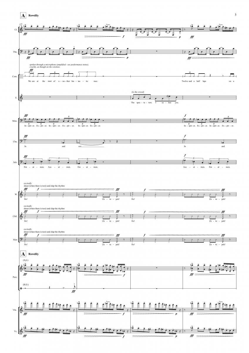 Zátopek! von Emily Howard, mit einem Libretto von Selma Dimitrijevic, ist eine 13 Minuten und 57 Sekunden dauernde Mini-Oper für sieben Sängerinnen und Sänger, Erwachsenen- und Kinderchor und Kammerensemble (2012), die durch das Leben und die Zeit des legendären tschechischen Langstreckenläufers Emil Zátopek (1922-2000) inspiriert ist. Bei den Olympischen Spielen 1952 in Helsinki gelang Zátopek ein sensationeller Hattrick: Er gewann Gold über 5.000m, 10.000m und im Marathon, wobei er über 5.000m eine Siegerzeit von 14 Minuten und 6 Sekunden erzielte. Zátopek! ist eine mitreißende musikalische Nachstellung dieses legendären Rennens nahezu in Echtzeit und eine Hommage an seinen außergewöhnlichen Sieger. Auftragswerk von Second Movement mit Mitteln aus New Music 20x12 - einem von Jillian Barker und David Cohen initiierten und von der PRS for Music Foundation in Partnerschaft mit der BBC, LOCOG und NMC Recordings organisierten britischen Förderprogramm. Teil der Londoner Kulturolympiade 2012. Uraufführung: 15. Juni 2012, The Epstein Theatre, Liverpool Second Movement, Ensemble 10/10, dirigiert von Clark Rundell, Mitglieder des Royal Liverpool Philharmonic & Liverpool Philharmonic Youth Choirs