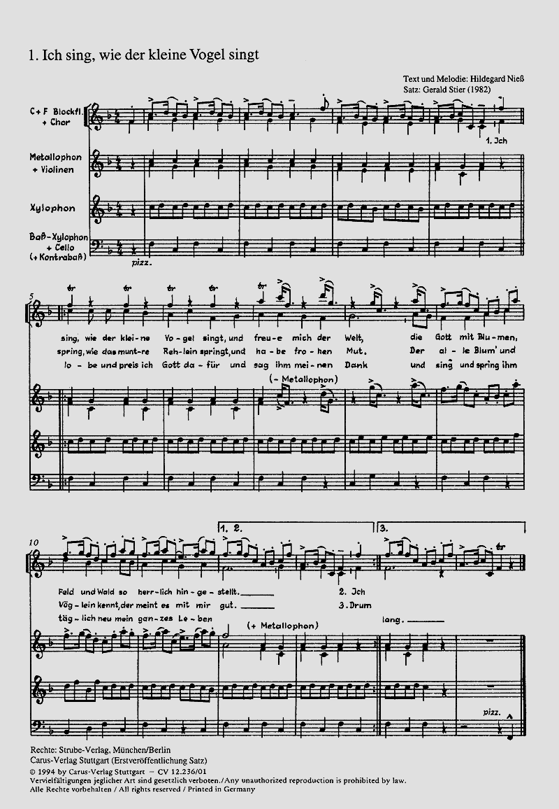- Besetzung Kinderchor, Streicher, Orff-Instrument und Instrument