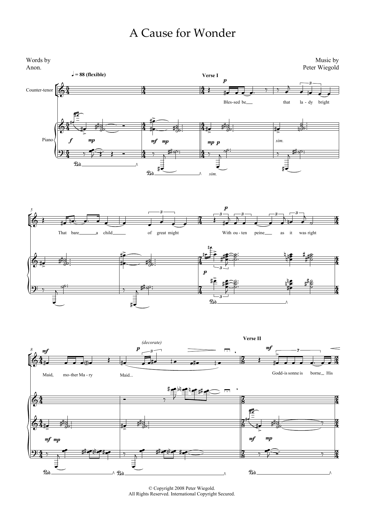 A Cause for Wonder (for counter-tenor and piano)