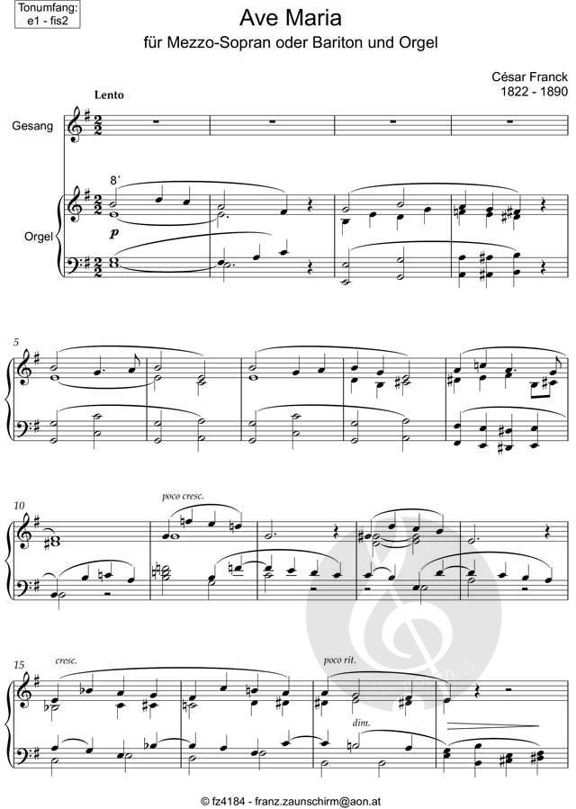 Dieses "Ave Maria" von César Franck besticht durch kantable Linien, warme Harmonik und einen getragenen, meditativen Charakter. Ein dankbares Werk für die musikalische Gestaltung von Gottesdienst, Andacht und Konzert – jetzt sofort als Noten-Downlaod.
