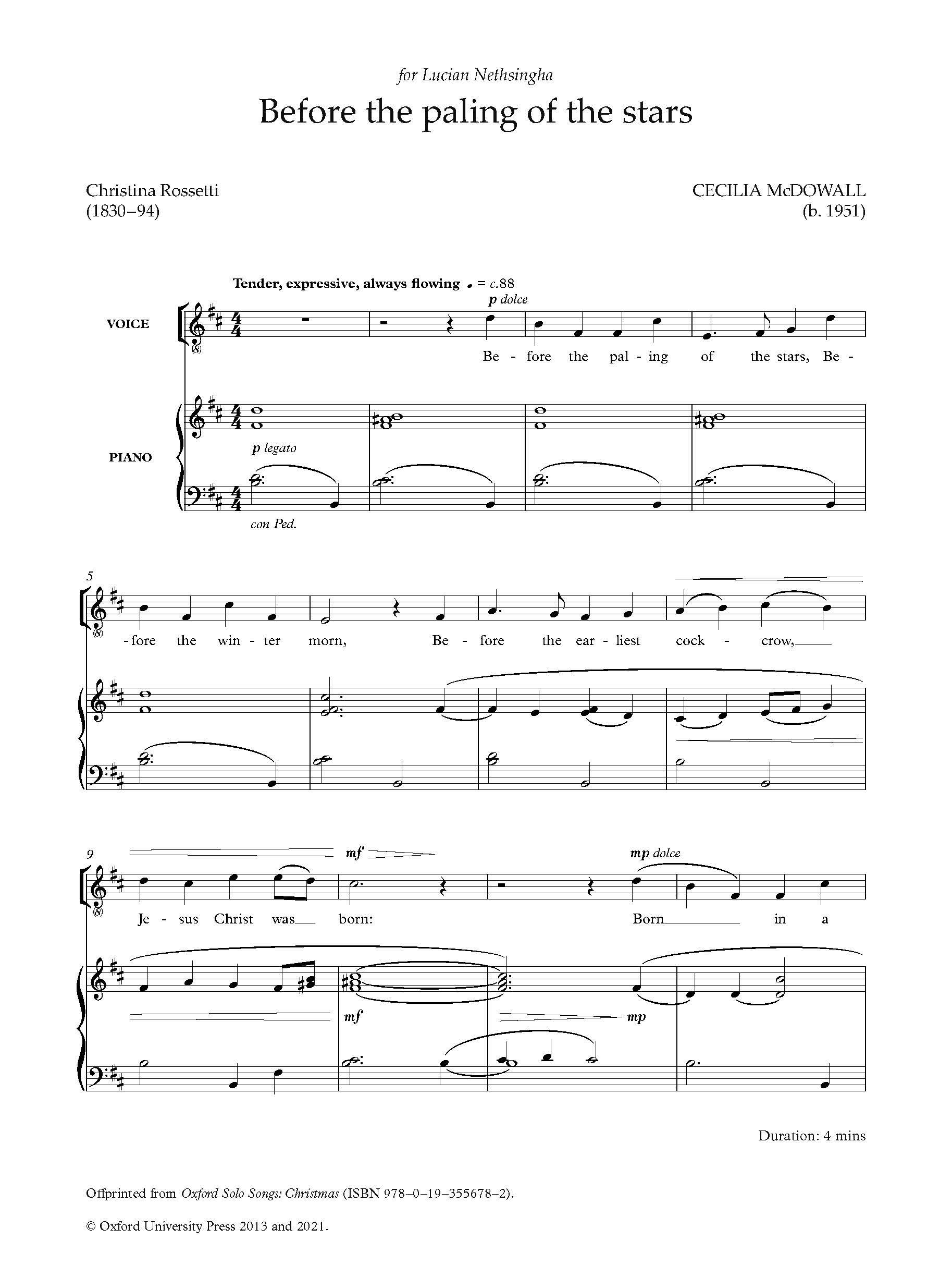 Reginal Wright's emotional and uplifting Crossroad sets Robert Frost's well-known poem 'The road not taken'. A twinkling piano accompaniment supports the voices, and the optional violin duet floats above, expanding on figures from the vocal parts.