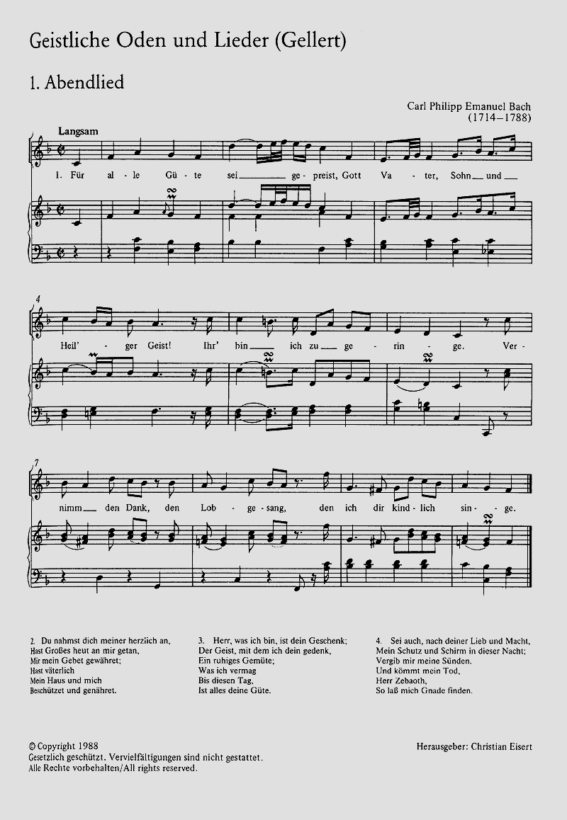Carl Philipp Emanuel Bach, Christian Fürchtegott Gellert Abendlied aus: Geistliche Oden und Lieder