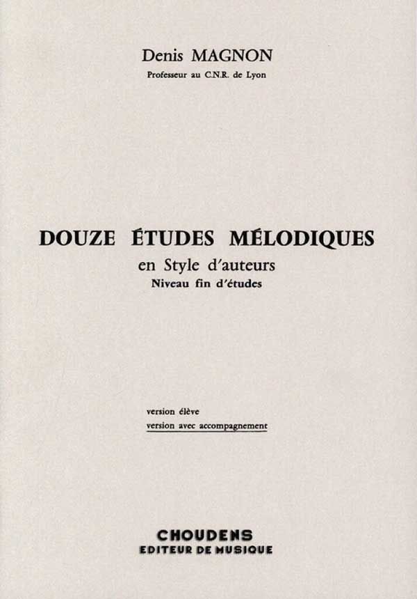 Twelve melodic studies in the style of various authors, from Ravel to Bach, Debussy to Mendelssohn. This end of studies edition of the book is the version with accompaniment.