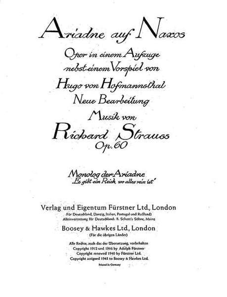 aus: Ariadne auf Naxos op. 60 für Sopran und Klavier
