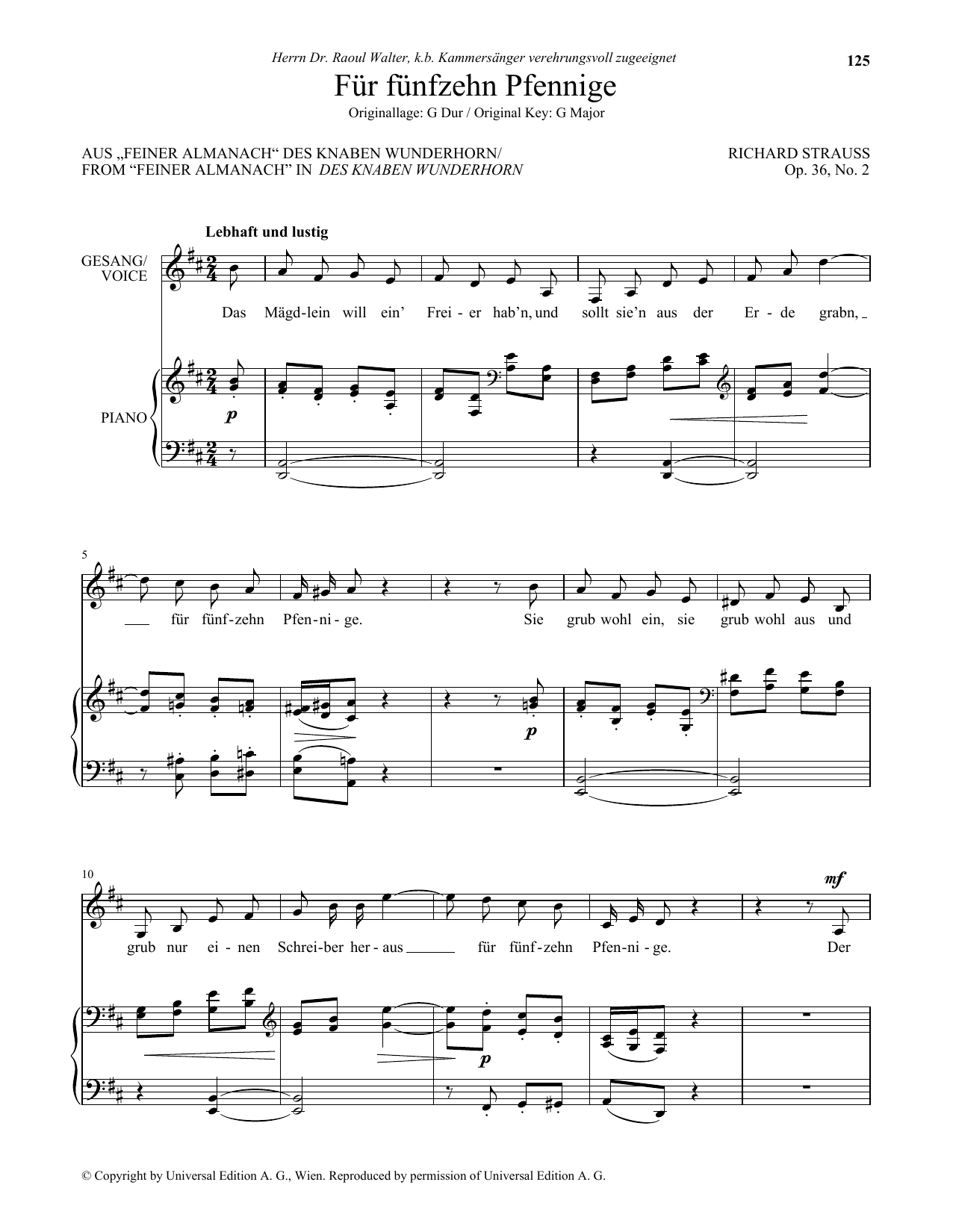 Fur Funfzehn Pfennige (Low Voice)