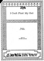 I Can't Find My Gal composed by Peter De Rose with words by Jo Trent in the key of C Major arranged for voice and piano with ukulele chords.