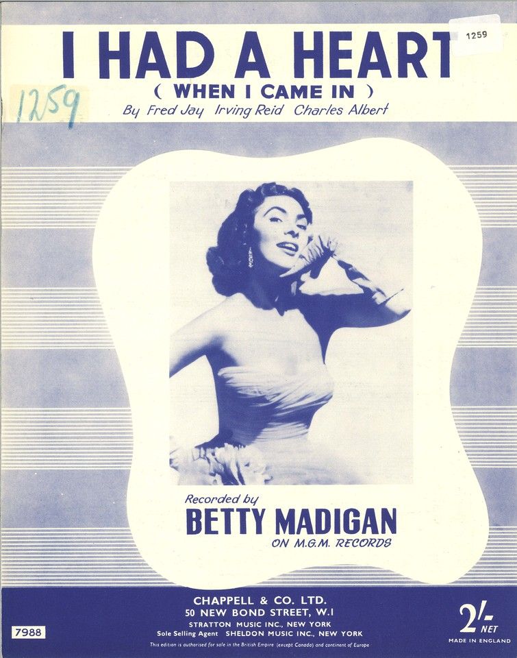 I Had A Heart (When I Came In), written by Fred Jay, Irving Reid and Charles Albert, as performed by Betty Madigan, arranged for voice and piano.