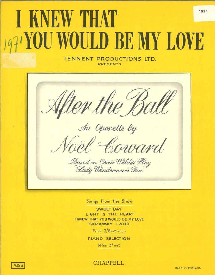 I Knew That You Would Be My Love, written by Noel Coward, from 'After The Ball', arranged for voice and piano.