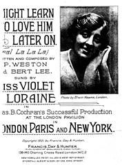I Might Learn To Love Him Later On, written and composed by Bert Lee and RP Weston, as performed by Miss Violet Loraine, arranged for voice and piano.