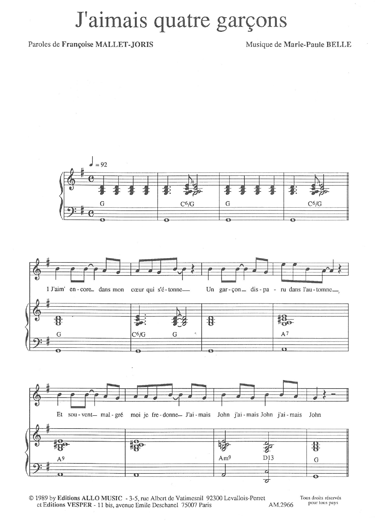 J'aimais Quatre Garçons