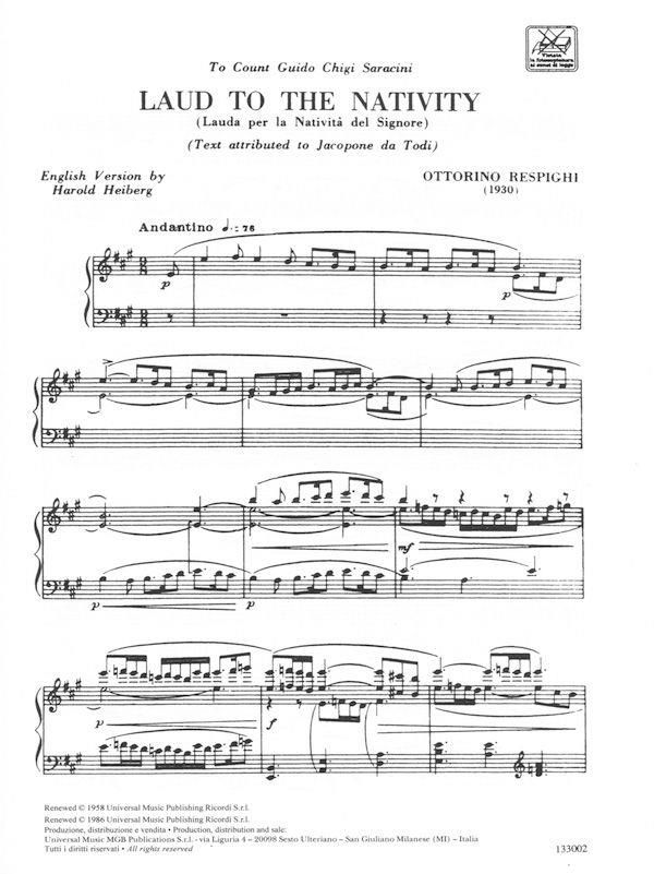 Italian/English. Contents: Contenti N'andremo - Ecco Quilla (Ah, How Rude) - Ede Cio Vedo (And This Child) - Gloria Laude (Praise to Thee) - O Car Dolce (My Child, Sweet) - Pastor, Voie (Fear Not) - Segnor, Tu Sei - Toglie Nostre (Take Our Cloaks) - Voglio Ve Consolare.