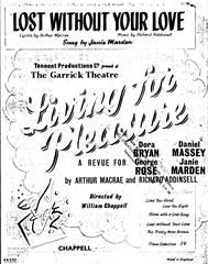 Lost Without Your Love composed by Richard Addinsell with words by Arthur MacRae, from Living For Pleasure in the key of G Major arranged for voice and piano.