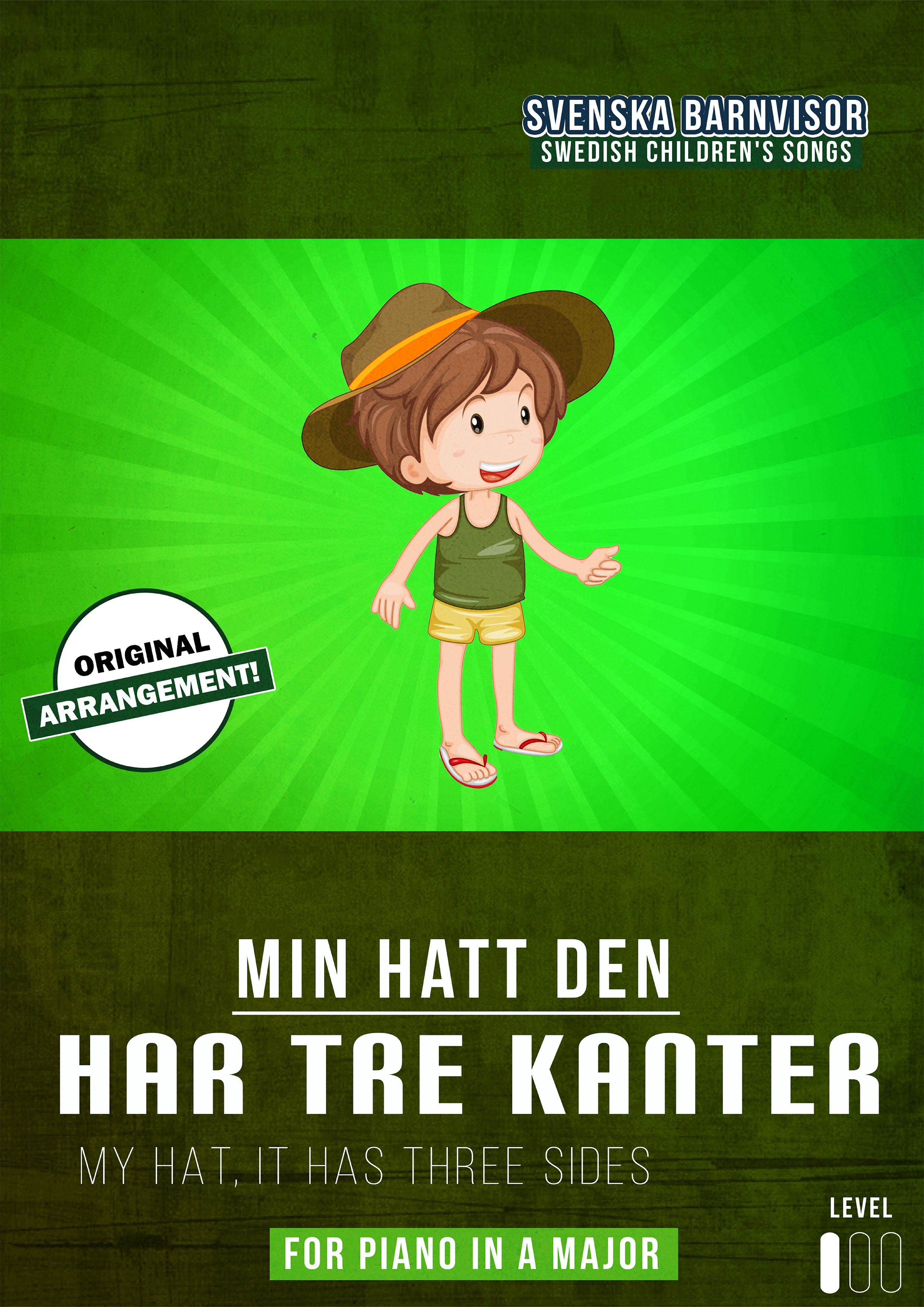 This music book contains the original sheet music of the sweet swedish children's song "Min Hatt, Den Har Tre Kanter" for piano and vocal. Simple arranged in A major with vocal text.