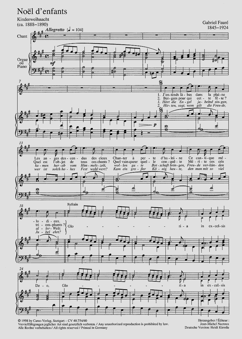 Gabriel Fauré Il est né le divin enfant Gottes Kind ist uns heut gebor'n