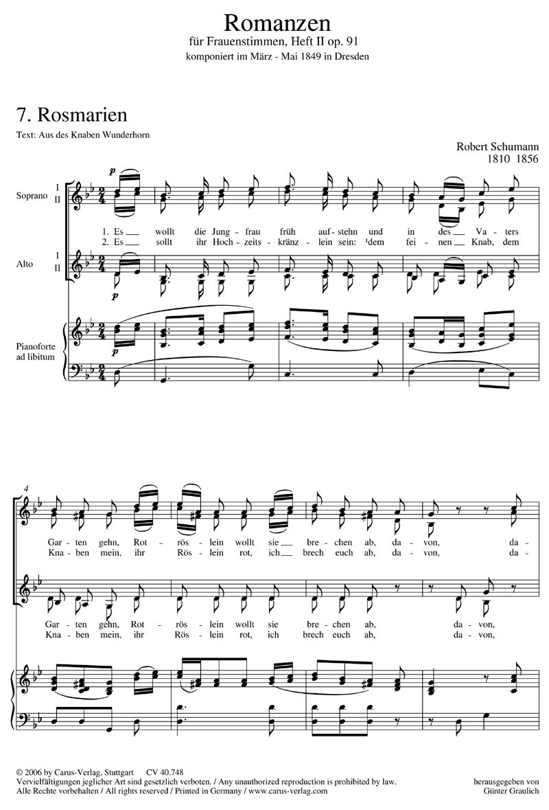 Romanzen II für Frauenstimmen op. 91