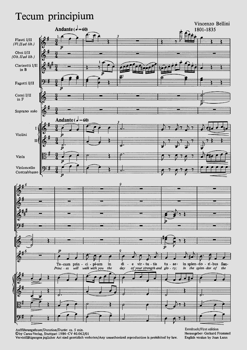 Solo S, 2 Fl, 2 Ob, 2 Clt, 2 Fg, 2 Cor, 2 Vl, Va, Vc, Cb