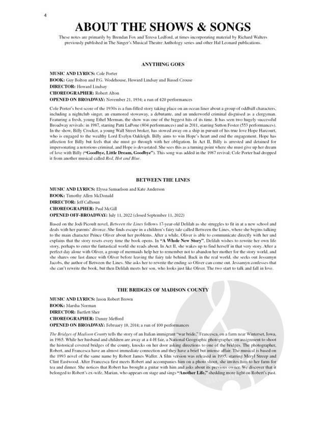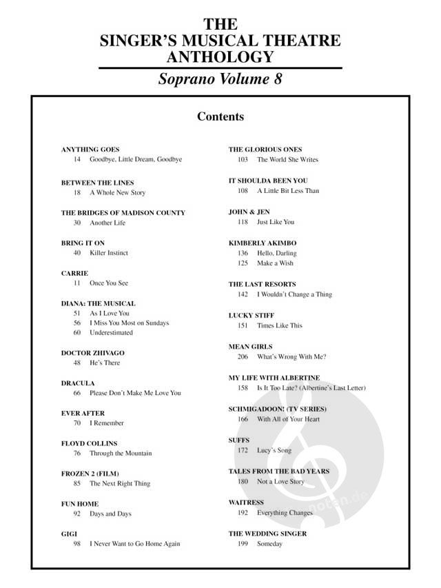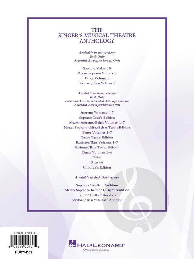 The Singer's Musical Theatre Anthology - Band 8 setzt das Vermächtnis fort, dem Gesangslehrer seit Jahrzehnten vertrauen. Dieser neueste Band erweitert den Kanon um eine inspirierende Mischung aus zeitgenössischen Broadway-Favoriten und Klassikern, die ihr lang erwartetes Debüt in der Reihe feiern. Jeder Song wird in authentischen, sängerfreundlichen Fassungen präsentiert, die direkt aus den Gesangspartituren entnommen sind, mit echter Klavierbegleitung, die die Stimme unterstützt - und nicht mit ihr konkurriert. Ob zur Vorbereitung auf Vorsingen, Unterricht oder Auftritte - dieses Buch ist eine unverzichtbare Ergänzung für die Bibliothek jedes Sängers. Separate Klavierbegleitung verfügbar.