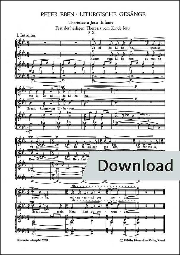 Theresiae a Jesu Infante - Proprium zum Fest der heiligen Theresia vom Kinde Jesu (3. Oktober): Veni di Libano - Komm vom Libanon