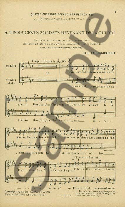 D. E. Inghelbrecht Trois Cents Soldats Revenant De La Guerre for one or two voices.