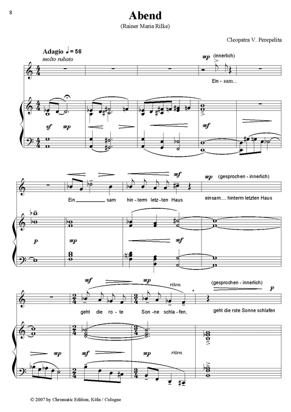 Nach Gedichten von Hoffman von Fallersleben, Rainer Maria Rilke,Clemens Brentano und Christian Morgenstern.
