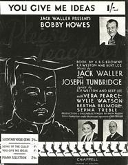 You Give Me Ideas composed by Jack Waller and Joseph Tunbridge with words by RP Weston and Bert Lee, from Please Teacher in the key of Eb Major arranged for voice and piano.