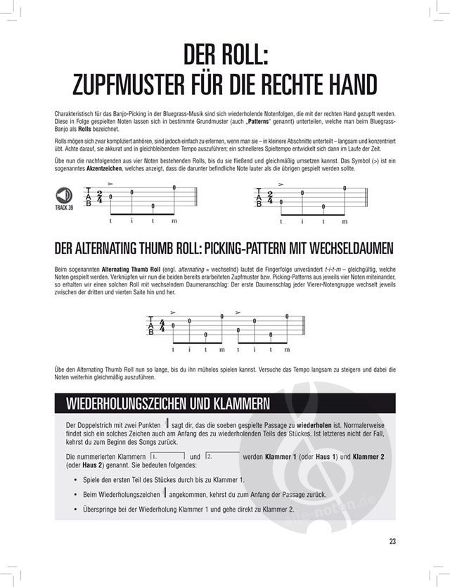 Ein Klassiker der Banjo-Lehrliteratur liegt nun in einer deutschen Übersetzung des amerikanischen Originals vor: die Hal Leonard Schule für Banjo. Der leicht verständliche und einfach umzusetzende Inhalt dieses umfangreichen Lehrwerks ist ein perfekter Leitfaden für all diejenigen, die das Spiel des 5-saitigen Bluegrass-Banjos erlernen wollen. Es bietet jede Menge Material zu wichtigen Spieltechniken, einschlägige Tipps und Ratschläge und nicht zuletzt tolle Songs zum Üben und Spielen sowie insgesamt 97 mit kompletter Band eingespielte Audiotracks zu sämtlichen Übungen, Beispielen und Songs im Buch.