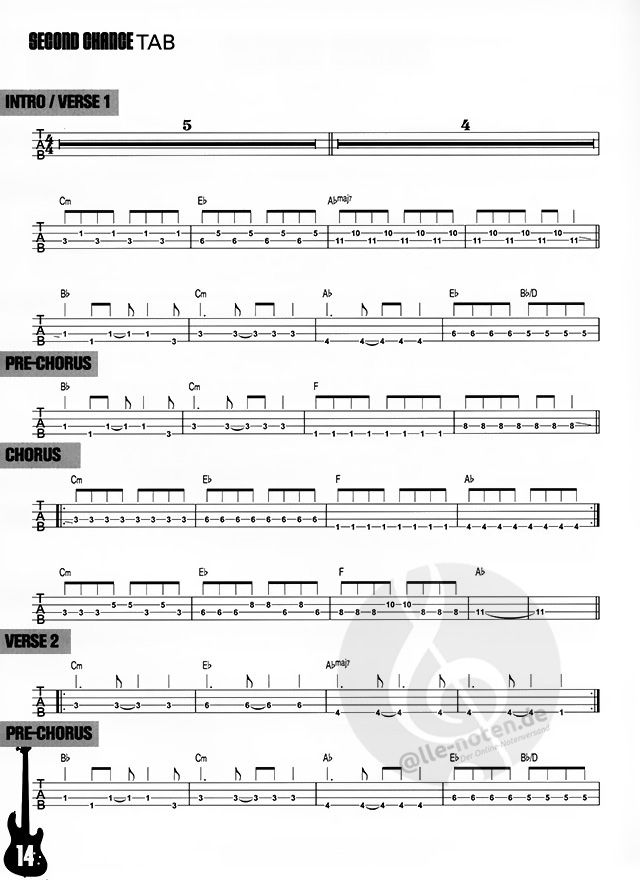 Die Songs sind jeweils als Leadsheet mit den verschiedenen Songteilen und den entsprechenden Basslinien in Tabulatur notiert. Dadurch lässt sich der Ablauf wesentlich schneller erfassen und man kann sich ganz auf die Bassparts konzentrieren.