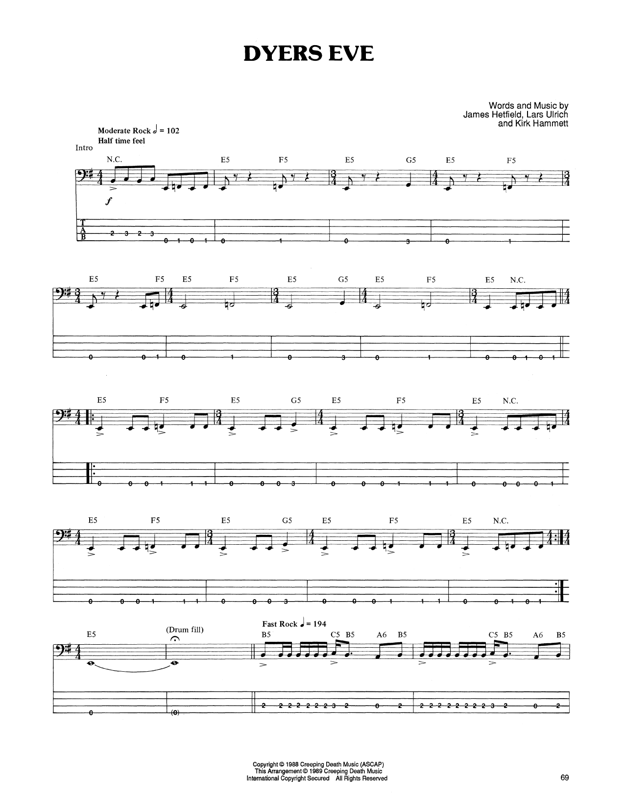 - Komponist Lars Ulrich Kirk Hammett James Hetfield