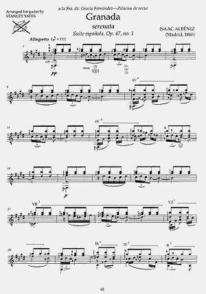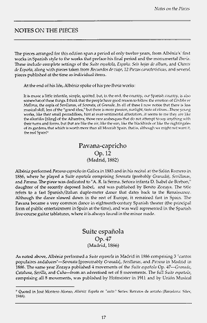 This comprehensive edition brings together all of the standard pieces in the adopted Albeniz 'guitar repertoire' along with additional pieces that complete many of the suites and other groupings as published during the composer's lifetime. These solo arrangements were made while consulting the earliest editions of the piano originals, and are faithful to Albeniz tempo indications, dynamics, phrasing slurs, and other expression markings. The selections are: Pavana-Capriccio, Op. 12 (1992); Suite espanola, Op. 47 (1886); Recuerdos de viaje, Op. 92 (1888); Doce piezas espanolas, Op. 164 (1889); Espana, seis hojas de album, Op. 165 (1890); Serenata espanola (Cadiz, cancion), Op. 181 (1890); Mallorca, barcarola, Op. 202 (1890); Zambra granadina, danse orientale, WoO (1891); Cadiz-gaditana, WoO (1891); and Chants d'Espagne, Op. 232 (1891-1894). Carefully researched and meticulously fingered in the scholarly manner one would expect from Stanley Yates.