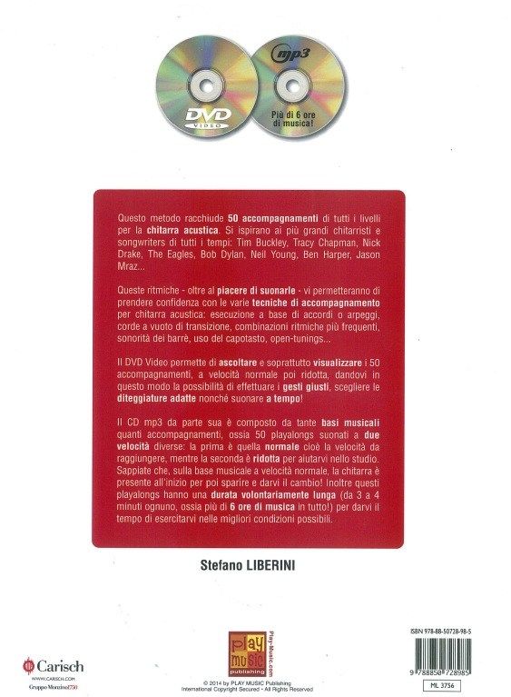 This method includes 50 accompaniments of all levels for the Acoustic Guitar. These accompaniments are inspired by some of the greatest guitarists and songwriters of all time; Tim Buckley, Tracy Chapman, Nick Drake, The Eagles, Bob Dylan, Neil Young, Ben Harper, Jason Mraz and more. These rhythms - in addition to the pleasure of playing them - will allow you to become familiar with the various techniques required for playing Acoustic Guitar accompaniments. The DVD video allows you to listen to and view the above 50 accompaniments at both normal and reduced speeds, giving you the chance to make the right gestures, and choose fingerings that are best suited to the playing time. The MP3 CD contains the 50 backing tracks played at two different speeds; the first is normal speed - the speed to be achieved - while the second is reduced to help study. This Book, CD and DVD set includes more than 6 hours of music in total, giving you the opportunity to practice playing in many possible conditions.