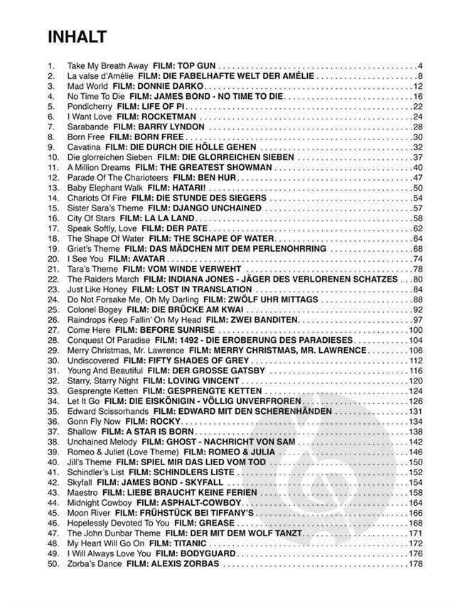 Der zweite Band Filmhits für Gitarre umfasst wie der erste eine große Auswahl an Klassikern und aktuellen Titeln der Filmmusikgeschichte. Nicht weniger als 50 der populärsten und mitreißendsten Songs und Themen aus bekannten Filmen sind in diesem Songbook für Gitarre arrangiert. Werke aus der Klassik, bekannte Charthits und durch die Filme berühmt gewordene Kompositionen wechseln sich ab und machen diese facettenreiche Sammlung zu einem weiteren Must-Have - und das nicht nur für Gitarre spielende Cineasten. Alle 50 Stücke sind für klassische Gitarre mit Tabulatur notiert. Die Spiralbindung erleichtert das Umblättern der Seiten und Ablegen auf dem Notenständer.