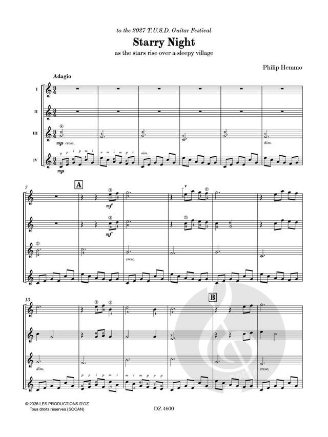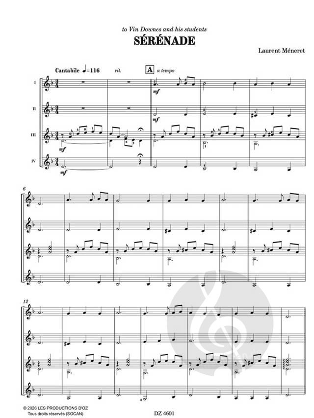 Von Nostalgie durchdrungen, klingt "Serenade" wie ein lateinisches Lied für Gitarrenquartett. Vin Downes gewidmet in Dankbarkeit für sein Interesse an meinen Kompositionen, sowie seinen Studenten in B...