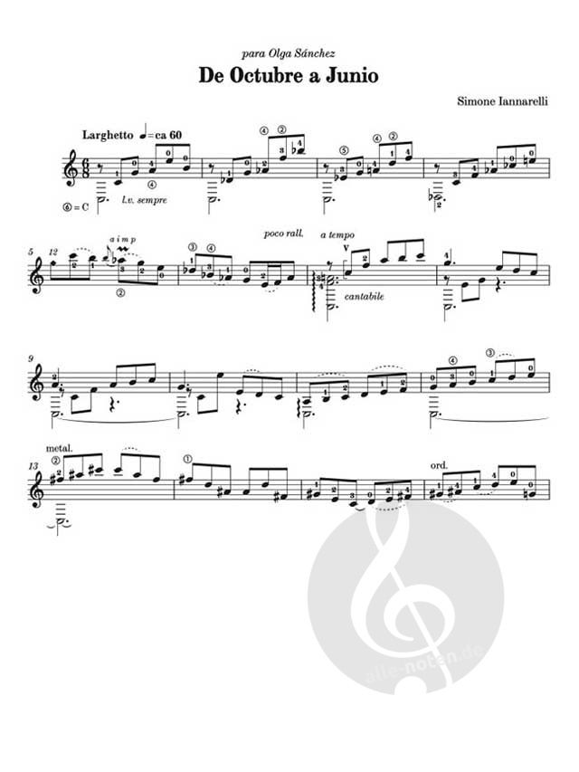 De Octubre a Junio ist ein romantisches Präludium in einem kantablen Stil. Die alternative Stimmung (6. Saite in C) verleiht dem Stück eine besondere Note, die gleichzeitig Süße und Tiefe vermittelt.